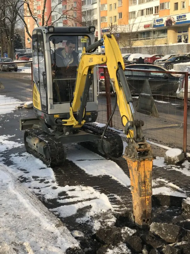 Мини-экскаватор с гидромолотом